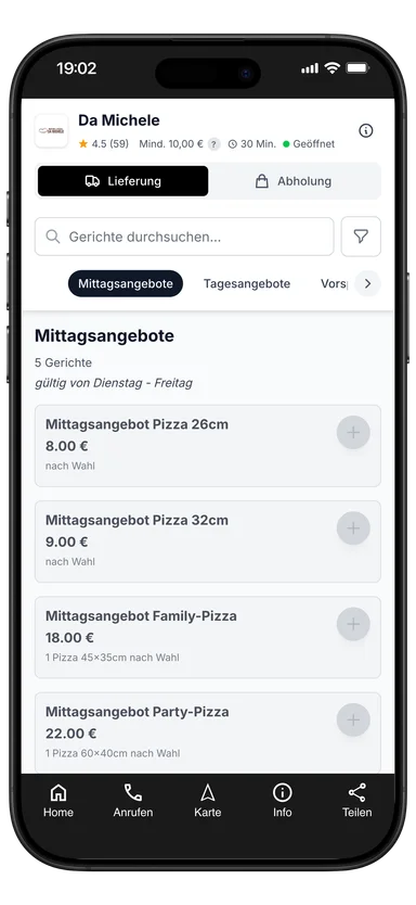 1 Pizza 26cm nach Wahl, 1 Tiramisu und 1 Getränk 0,5l
